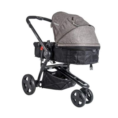 O assento reversível é um diferencial: pode ser ajustado para o bebê ficar virado para os pais ou para o mundo. O sistema de rodas dianteiras giratórias com trava de direção e suspensão, junto às rodas traseiras com freio e amortecimento, garante estabilidade e suavidade nos passeios.