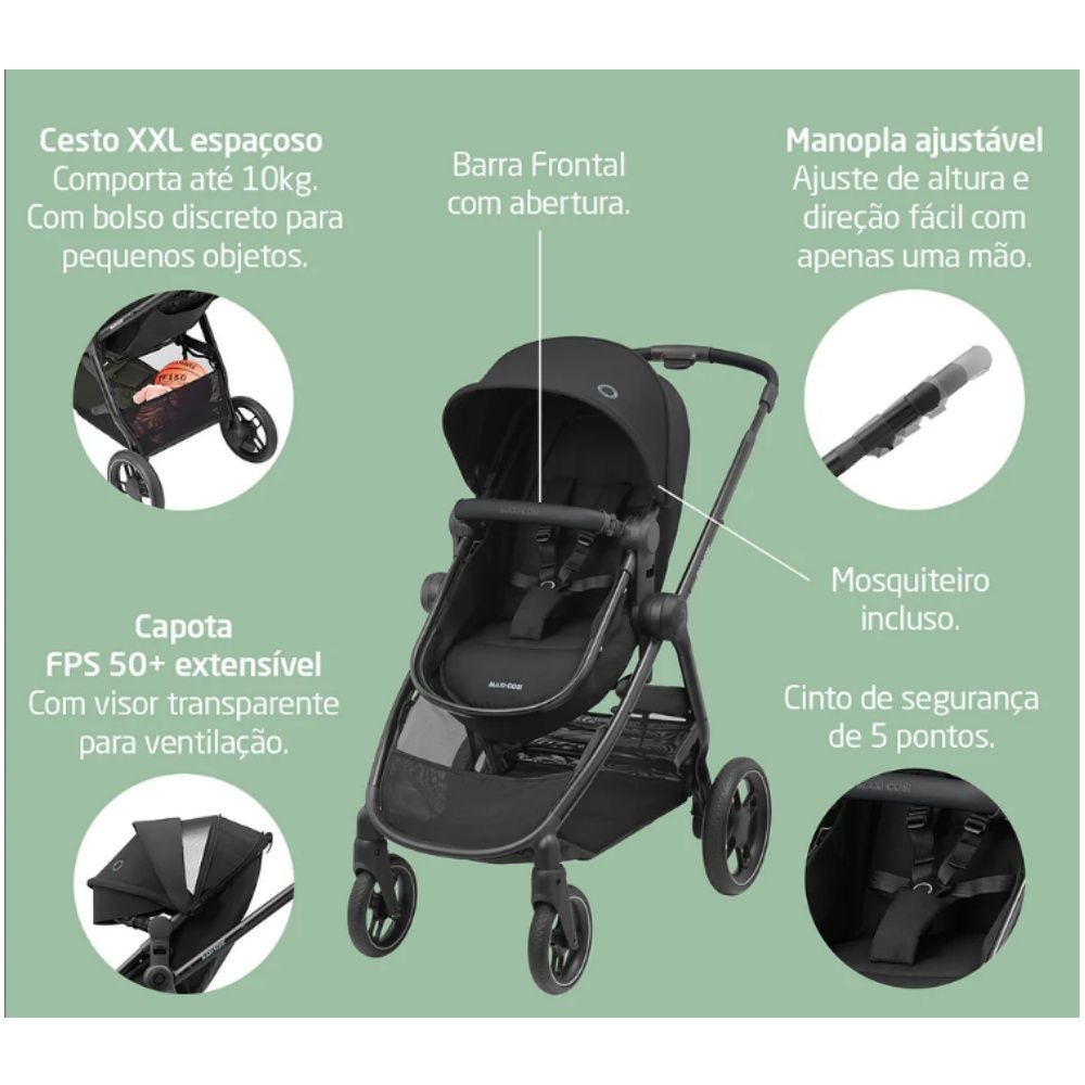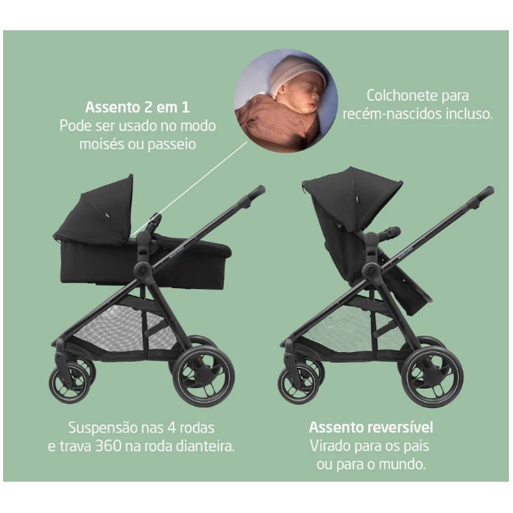 O kit acompanha ainda mosquiteiro, colchonete para recém-nascidos, cobre-pernas e adaptadores para encaixe de bebê conforto Maxi-Cosi — tudo pensado para tornar os passeios mais fáceis, seguros e confortáveis.