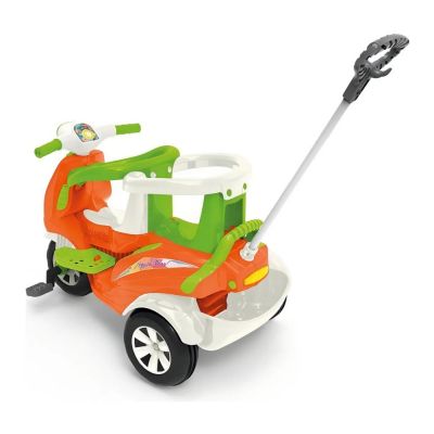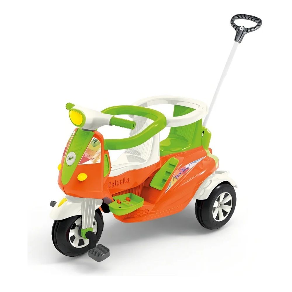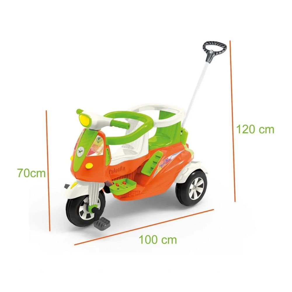 A Moto Duo é um triciclo infantil dois em um, desenvolvido para acompanhar diferentes fases da infância, permitindo que a criança utilize no modo passeio ou no modo pedal. Ela possui dois lugares com aros protetores independentes, possibilitando que crianças de idades diferentes passeiem juntas, tornando a experiência ainda mais divertida e inclusiva. Conta com som integrado para estimular a imaginação e cores alegres que tornam cada passeio mais atrativo. No modo passeio, acompanha empurrador, aro protetor e apoio de pés removível, todos de fácil encaixe. Para a versão pedal, basta retirar os acessórios, transformando a Moto Duo em um triciclo pronto para que os pequenos explorem o ambiente, sintam o vento no rosto e desenvolvam autonomia com segurança. Produzida pela Calesita, é ideal para transformar passeios em momentos de diversão e histórias inesquecíveis.