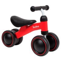 A bicicleta quatro rodas da Buba é ideal para os pequenos desenvolverem o equlíbrio. A bicicleta não possui pedais, assim evita que a criança de machuque. Para movimentar, a criança pode usar os pezinhos para se movimentar. Utilizada em várias partes do mundo, essa novidade da buba tem eficiência comprovada, melhorando a coordenação motora, o raciocínio lógico e também o autoconhecimento físico das crianças.