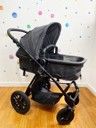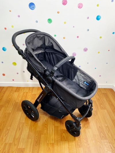Carrinho funcional que acompanha o crescimento da criança desde o nascimento até 4 anos. Transforma-se em alcofa e carrinho de passeio em segundos, com rodas com amortecimento, freio STOP & RIDE e alça ajustável em 5 posições. Inclui capa de chuva, mosquiteiro, bolsa e adaptadores universais.