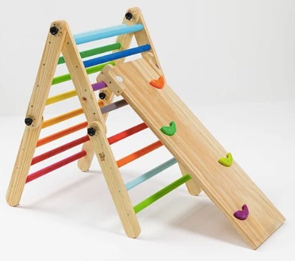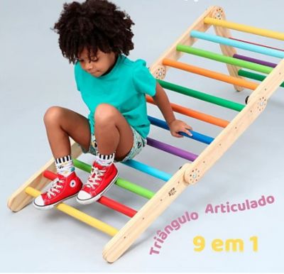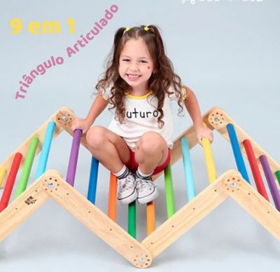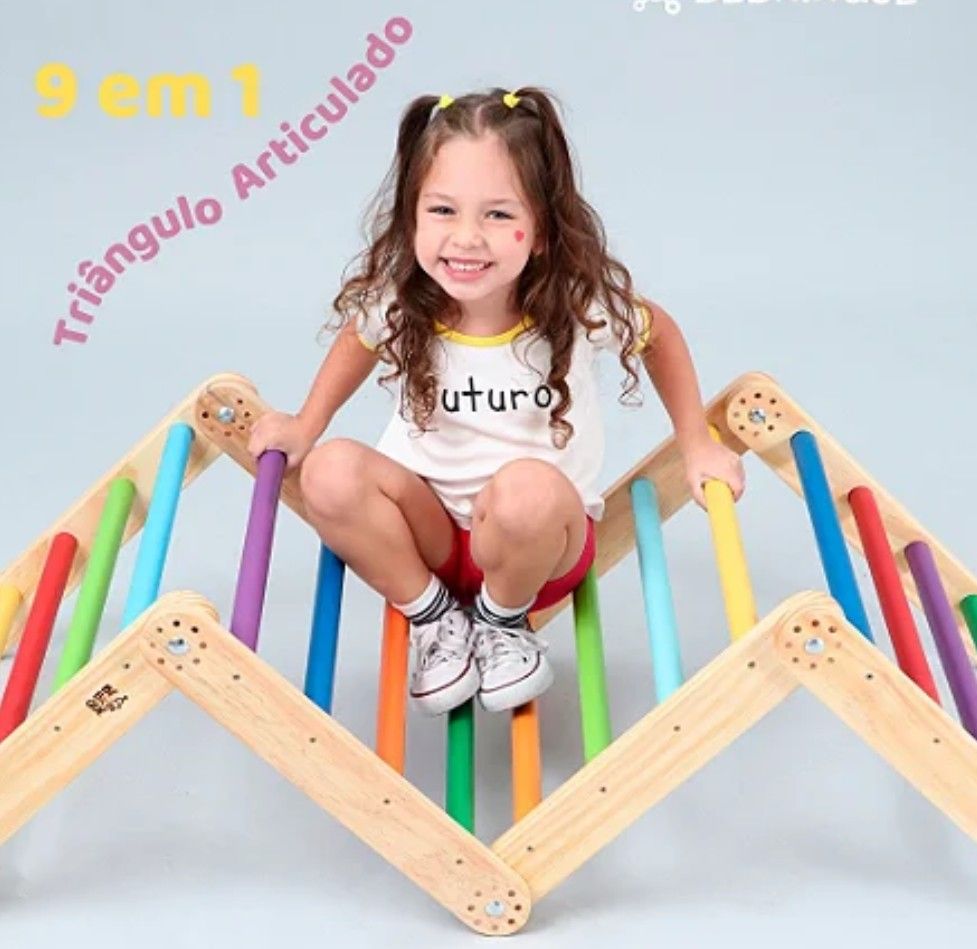 - O Triângulo é inspirado na metodologia Pikler, que foi desenvolvida pela pediatra Húngara Emmi Pikler e ajuda a trabalhar o equilíbrio e a motricidade para subir, descer, girar, escalar, etc.